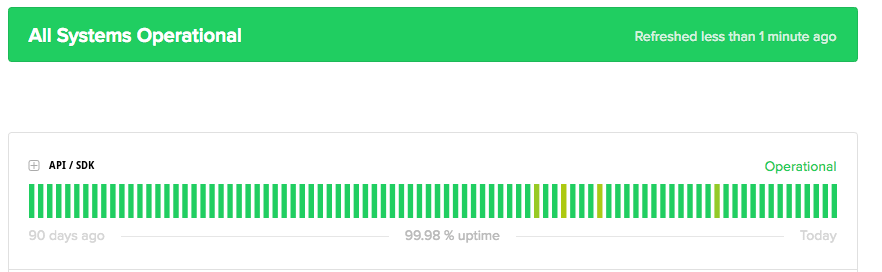- Reach and maintain system uptime of 99.99% (our APIs and SDKs).