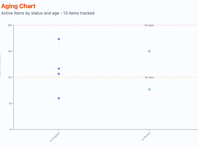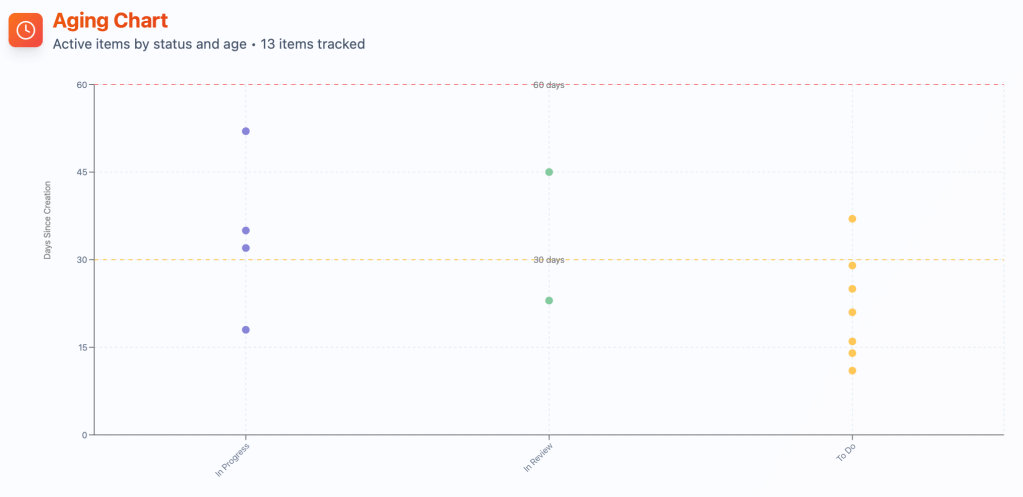 The Problem: Even perfectly estimated tasks can get stuck in the system. Backlog items “age” regardless of their Story Points. A 3-point task might hang in Code Review for a week, while an 8-point task flows through the entire cycle in a day.