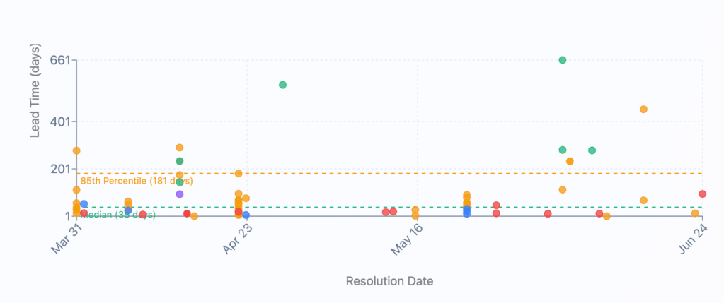 The Problem: Story Points don’t show where work gets stuck. They don’t provide insights for identifying bottlenecks and improving processes. A team can perfectly estimate all tasks while having serious flow problems.