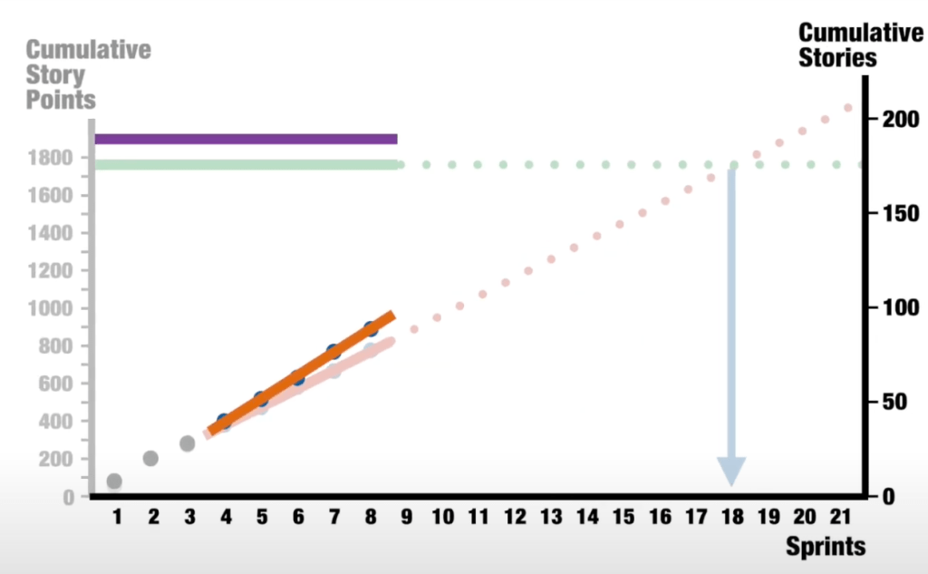 Super simplified example, 15 user stories completed in two weeks → throughput = 7.5 stories/week.