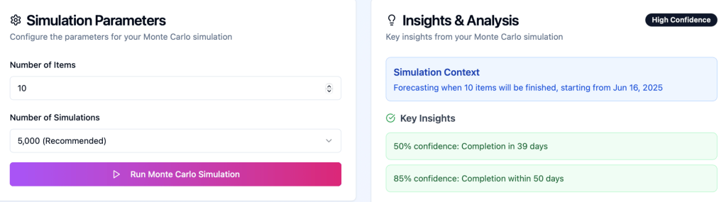 One thought on “Monte Carlo Simulation: Forecasting Throughput and Project Timelines”